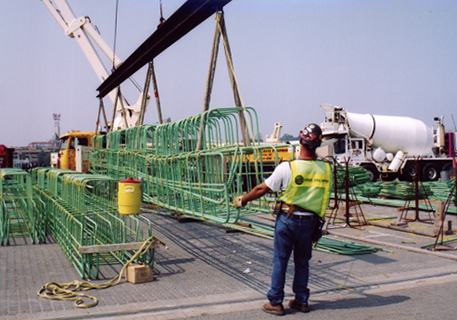 This marine construction project included the complete demolition and disposal of the existing marine structures, the installation of the new foundation piles, precast concrete pile caps, structural steel, exotic hardwood decking, steel sheet pile bulkhead with anchor system, timber fender systems, winching systems, articulated heavy lift structural steel lift platform, and all required utilities.