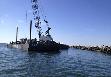 This US Army Corps of Engineers’ project is to repair the east offshore breakwater. The repairs consist of placing 3-ton to 5-ton stones in areas in need of reinforcement. Over 3,000 tons of stone were utilized. All hauling, loading, sea transporting, and placing of the stone was performed with all BAC personnel and equipment.