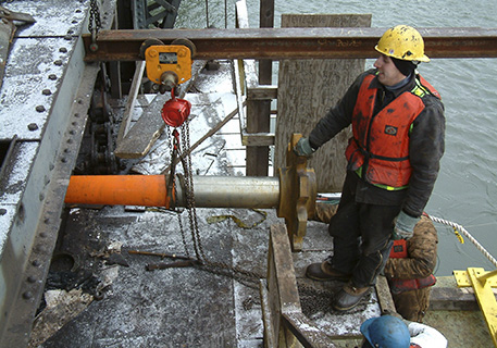 As part of this river bridge construction project, BAC replaced all open gearing on this rolling bridge with enclosed gearboxes, new driveshafts, and bearings. Accommodating AMTRAK's schedule, BAC worked off sectional barges to avoid blocking the channel.